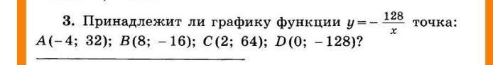 y=-128/x, C(2;64), y=-128/2=-64≠64, Нет