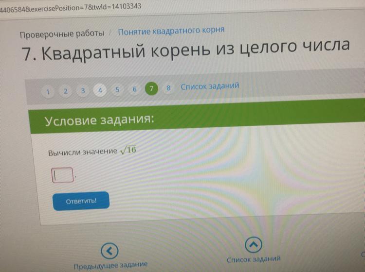 Квадрат из 16 = 4