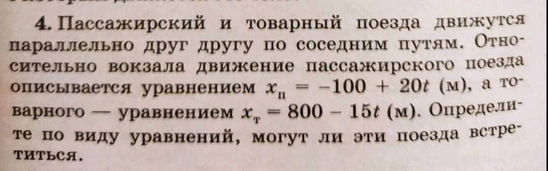 По виду уравнений - поезда встретятся, поскольку скорости поездов отличаются знаками - то есть направлены друг к другу.