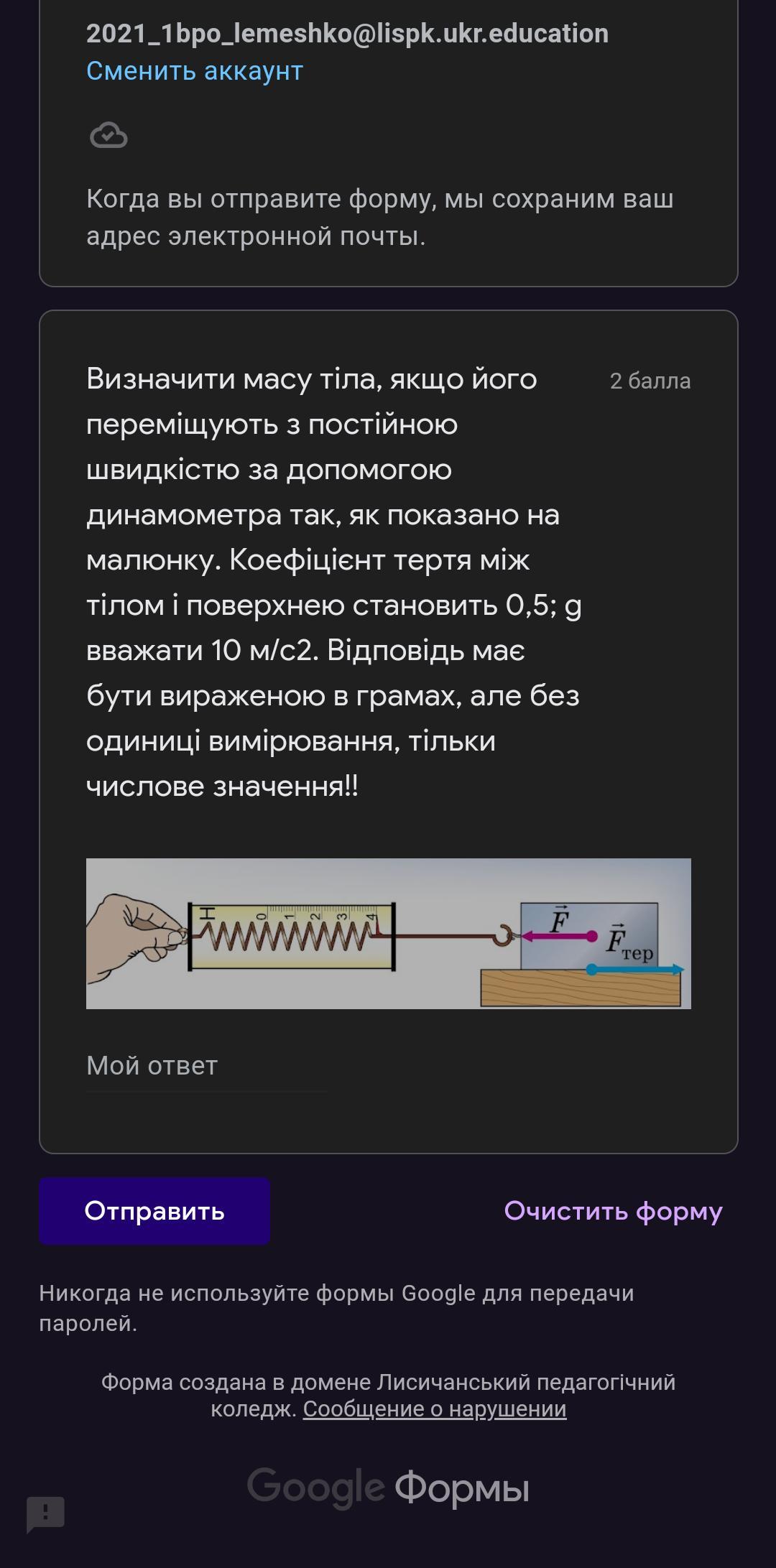 Узнать масу тела если его перемещаются с постоянной скоростью с помощью динамометра. Коэффициент трения между телом и объектом 0.5, g=10м/с. Изображение прикреплено ниже, на нём показывано, что на тело воздействует ещё одна сила.