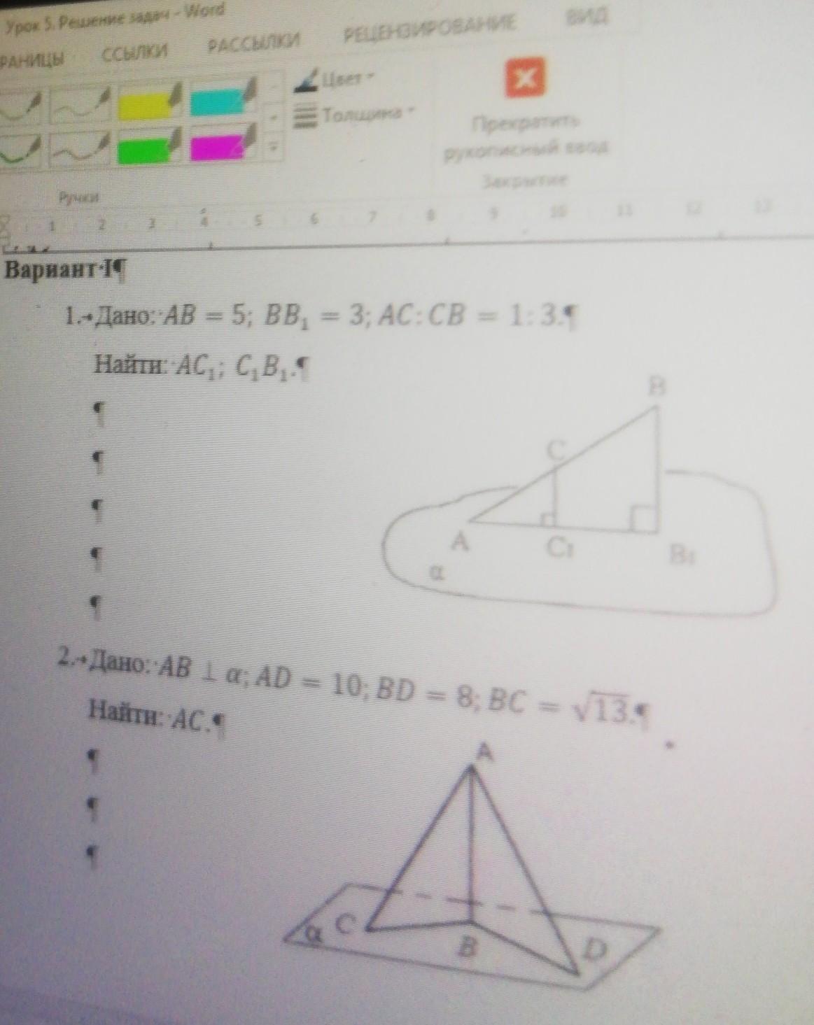 1) ΔАВВ1 - прямоугольный ⇒ по теореме Пифагора АВ1=√(5²-3²)=4 .