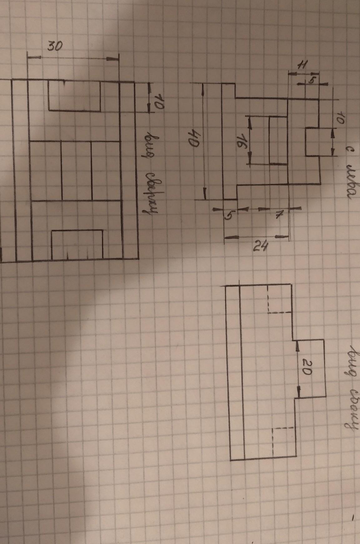 ОЧЕНЬ СРОЧНО! ЧЕРЧЕНИЕ!! Построить 3 вида детали: фронтальный, вид сверху, вид слева и нанести размеры. СРОЧНО