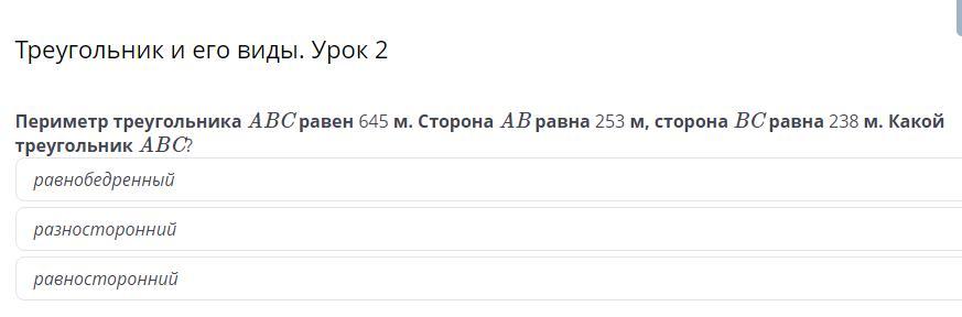Периметр треугольника АВС равен 645 м. Сторона АВ равна 253 м, сторона ВС равна 238 м. Какой