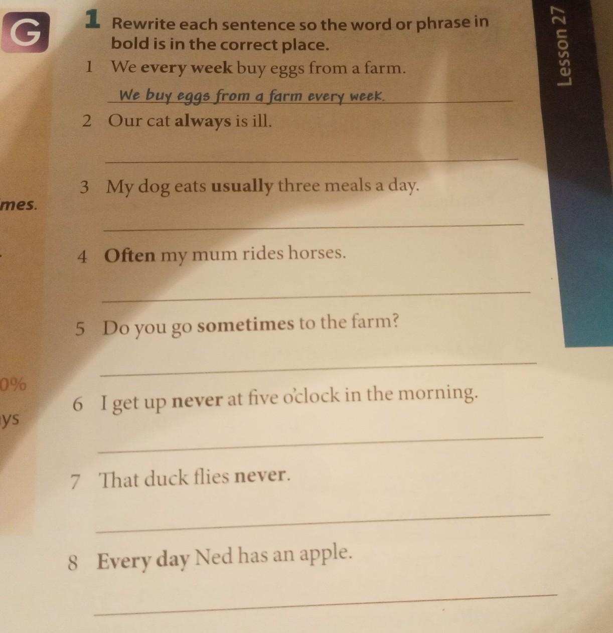 Ned has an apple every day.