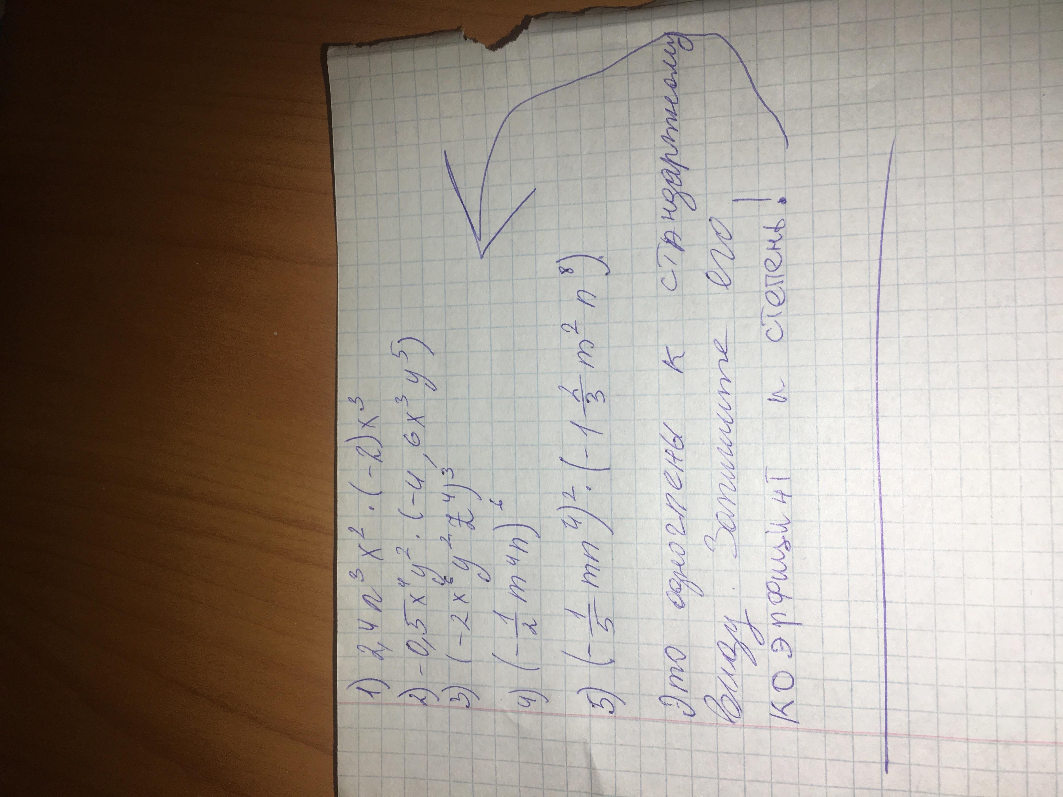 Привести одночлены к стандартному виду, определить коэффициент и степень одночлена.