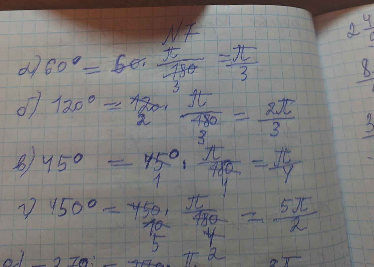 углы заданные в градусах выразите ее в радианах углы заданы в радианах выразите в градусах