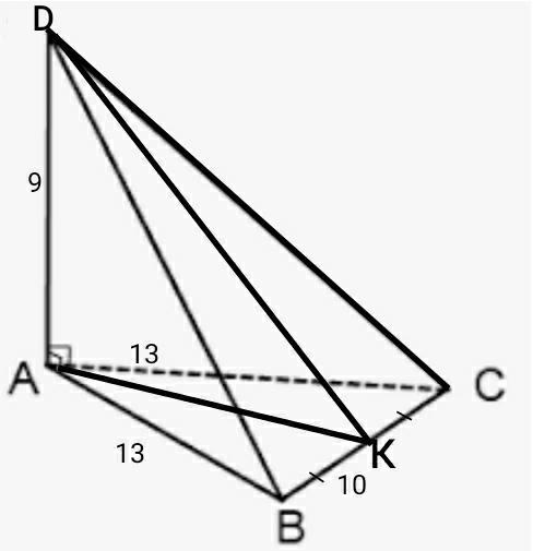 DK=√(DA²+AK²)=√(9²+12²)=√(81+144)=