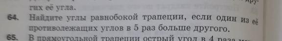 У равнобокой трапеции углы прилегающие к основе равны и сумма всех углов 360*. Значит мы можем два угла обозначить как х, а другие как 5х