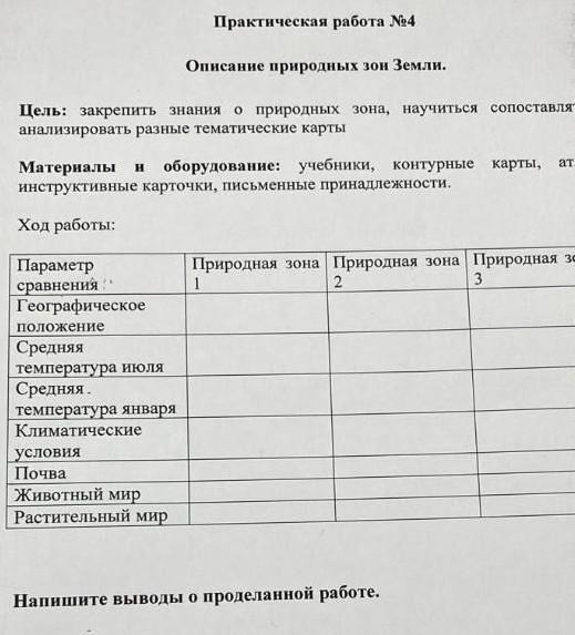 Здравствуйте, не знаю какие именно природные зоны вам нужны, но вот есть некоторые ответы, может вам они подойдут, только оформите по своему.(как в задании)