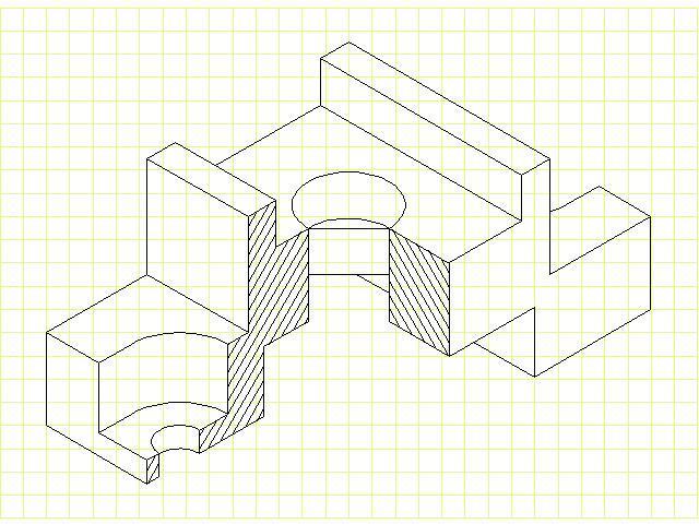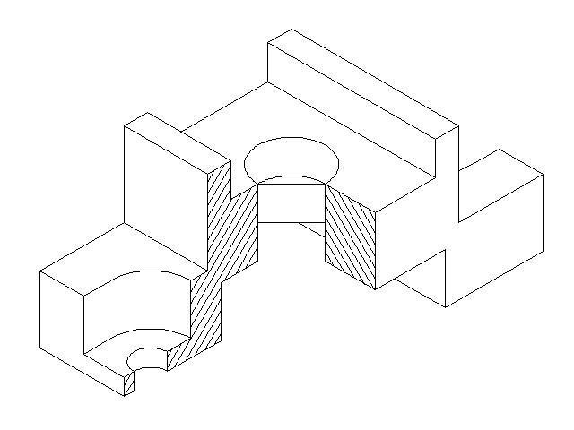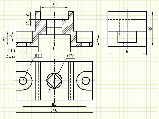 по двум заданным построить третий вид, выполнить необходимые разреры и построить аксонометрическую проекцию с вырезом передней четверти детали
