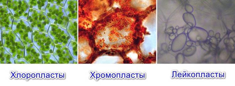•окрашенные — хромопласты (желтого, красного и других цветов).