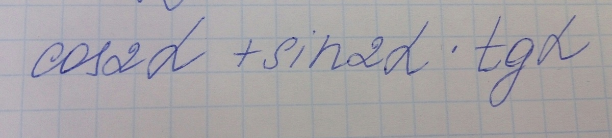 cos2a+sin2a*tga=cos2a+2sinacosa*sina/cosa=cos2a+2sin^2a=cos^2a-sin^2a+2sin^2a=cos^2a+sin^2a=1.