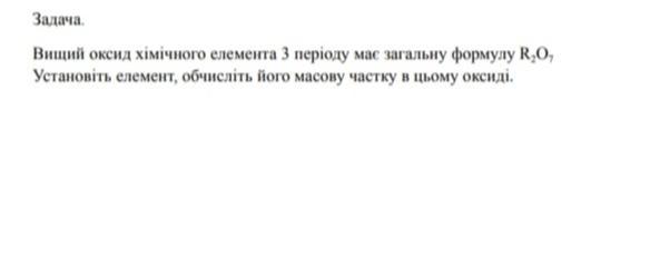 Вищий оксид хімічного елемента 3 періоду має загальну формулу R2O7. Установіть елемент обчисліть його масову частку в цьому оксиді.