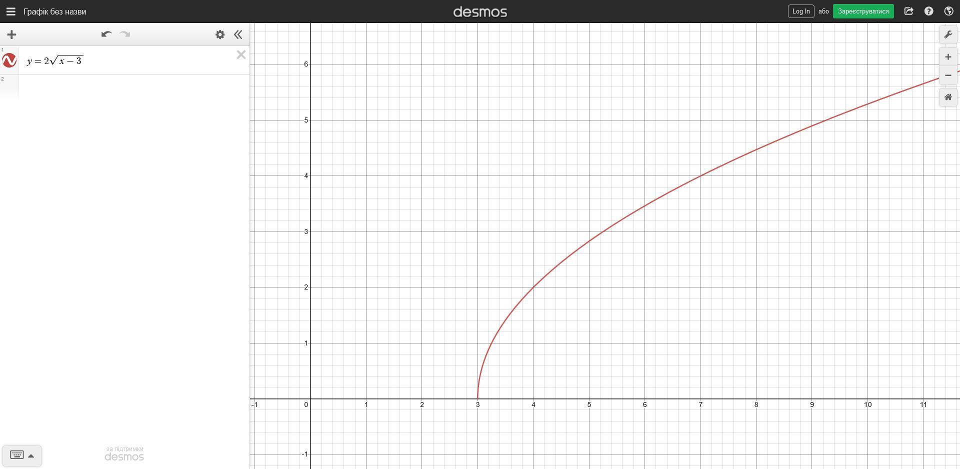 растягиваем вдоль оси ОУ в два раза получится y=2√(x-3)