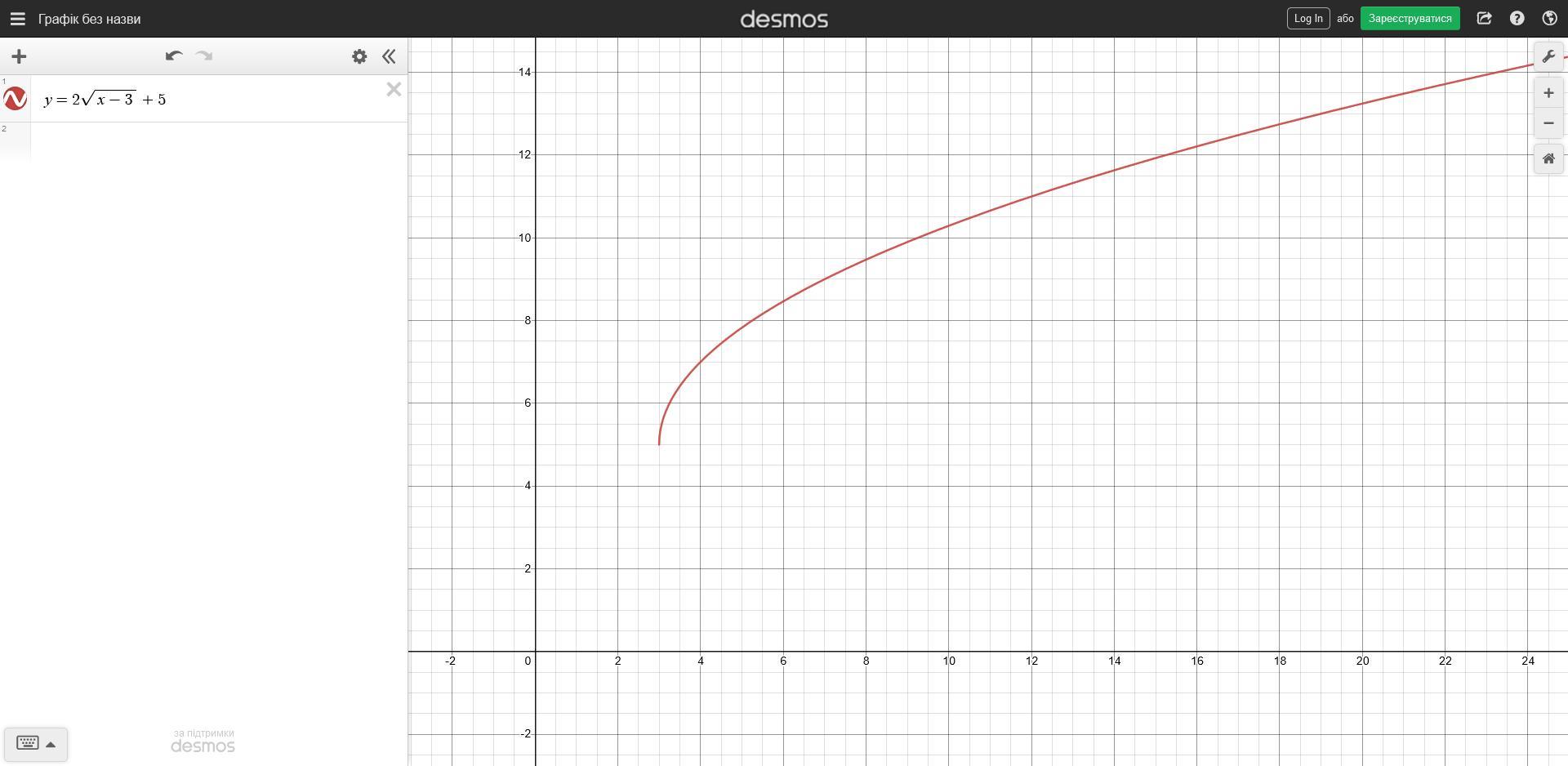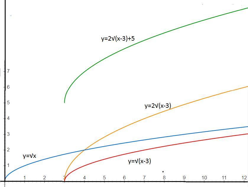 смещаем вверх на пять единиц получится y=2√(x-3)+5