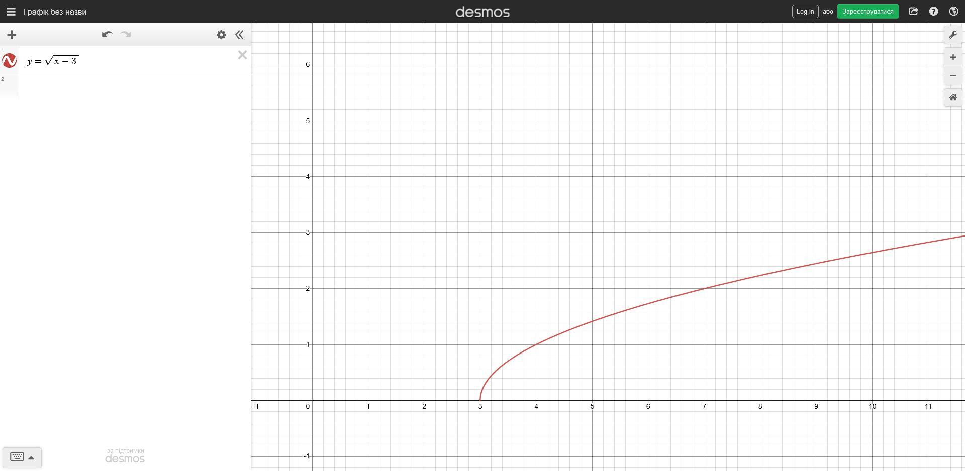 затем смещаем его вправо на 3 единицы получится y=√(x-3)