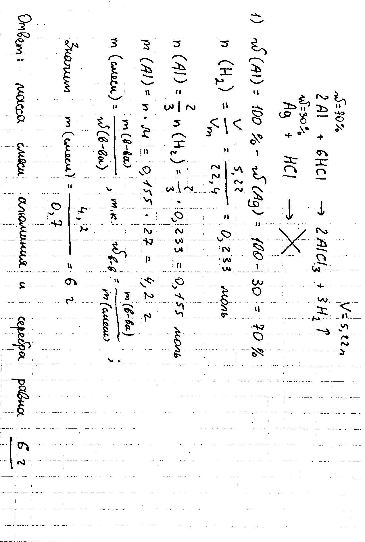 Cмесь опилок алюминия и серебра, в которой w(Ag)=30%, обработали избытком соляной кислоты, при этом выделилось 5,22 л. газа (н.у.). Какова масса исходной смеси? ПРОШУ ПОМОГИТЕ, даю 20 баллов!!