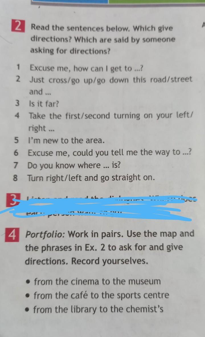 2. (ANSWER-отвечают) Пересеките/идите вверх / вниз по этой дороге/ улице и.....