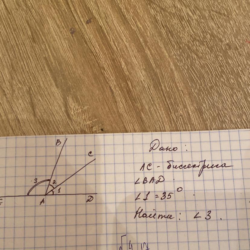 Следовательно , угол 2 = 35, угол BAD= 35+35=70. Угол 3 = 180-70=110 (смежные углы)