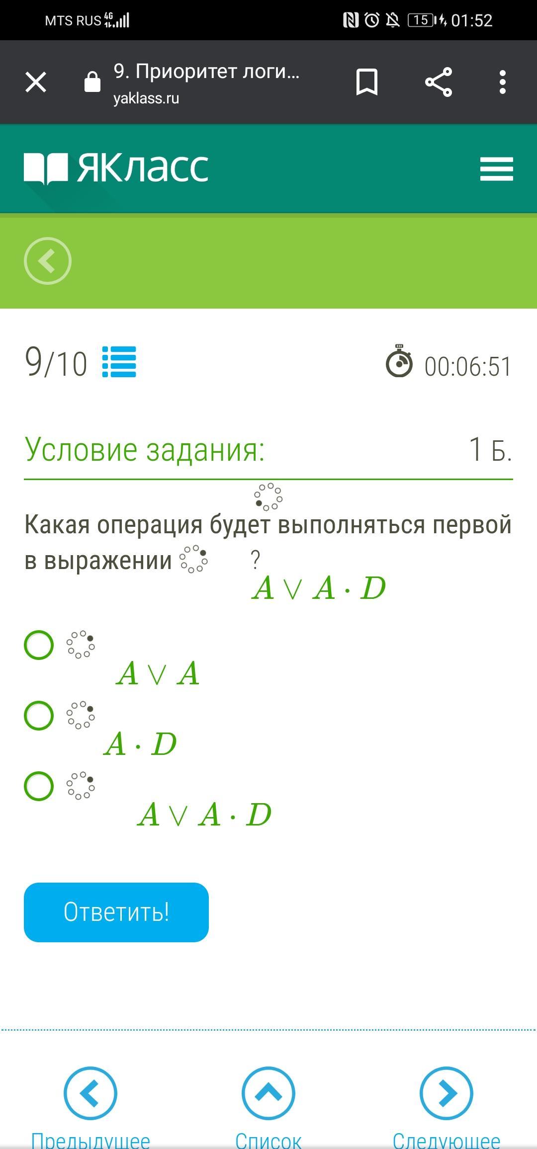 A * D, поскольку логическое умножение производится раньше логического сложения.