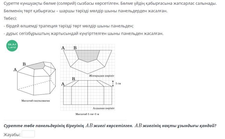 суретте АВ = 2 см тең, егер 1 см = 1 м болса, АВ жиегінің нақты ұзындығы 2 м болады