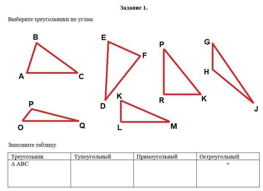 Треугольник: АВС, EFD, PRK, GHJ, OPQ, KLM.