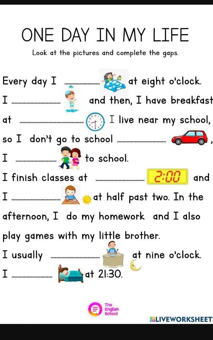 I finish classes AT TWO O'CLOCK and I LUNCH at half past two.In the afternoon, I do me homework and I also play games with my little brother. I usually HAVING supper at nine o'clock. I go to sleep at 21:30.