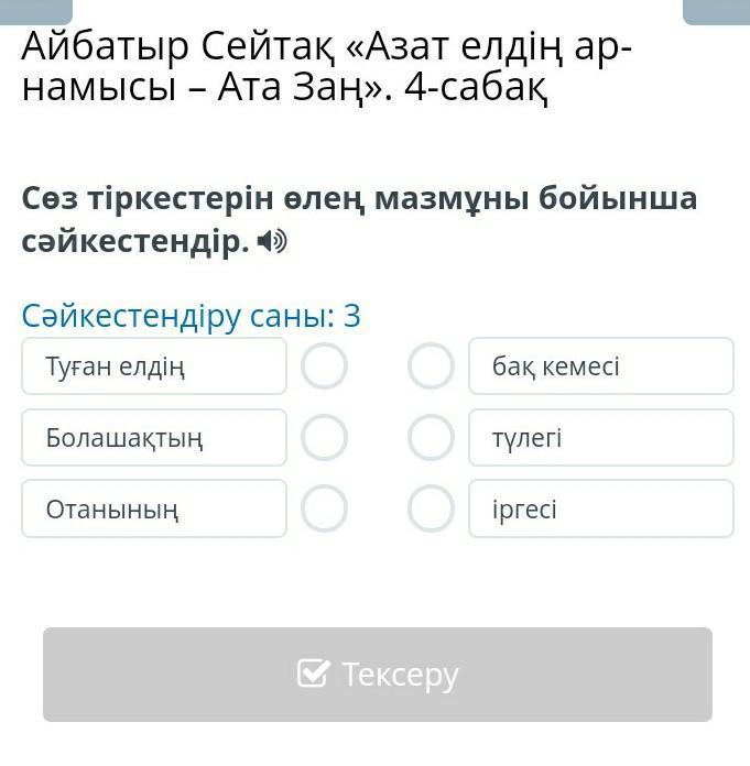 Сөз тіркестерін өлең мазмұны бойынша сәйкестендір.