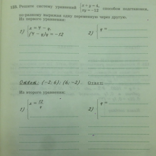 х=4-у