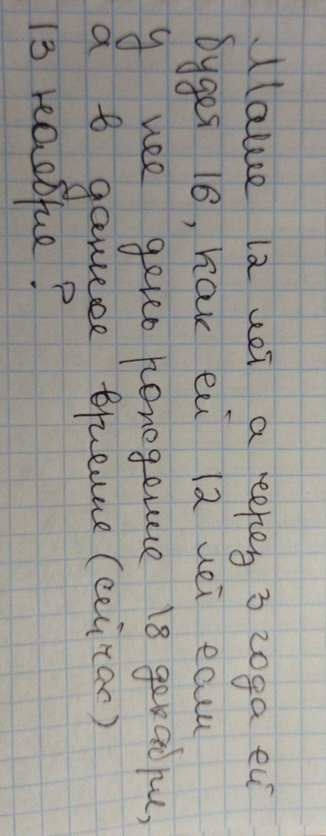 ей этом году будет 13 лет, а тк её день рождения ещё не пришёл - ей 12 (через 35 дней ей станет 13)