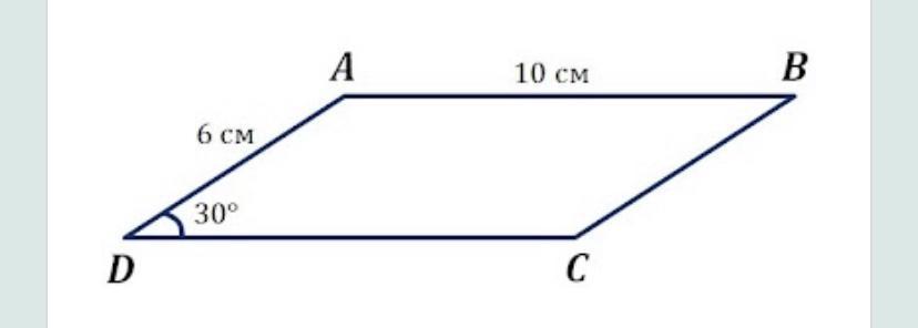 А площадь параллелограмма находится по формуле : AD*DC*sin угла D