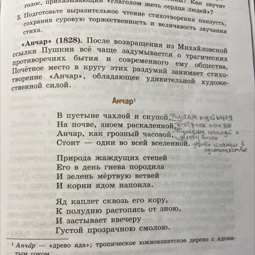 Переведите строки на более понятный язык к каждой строке к стихотворению Анчар А.С.Пушкин