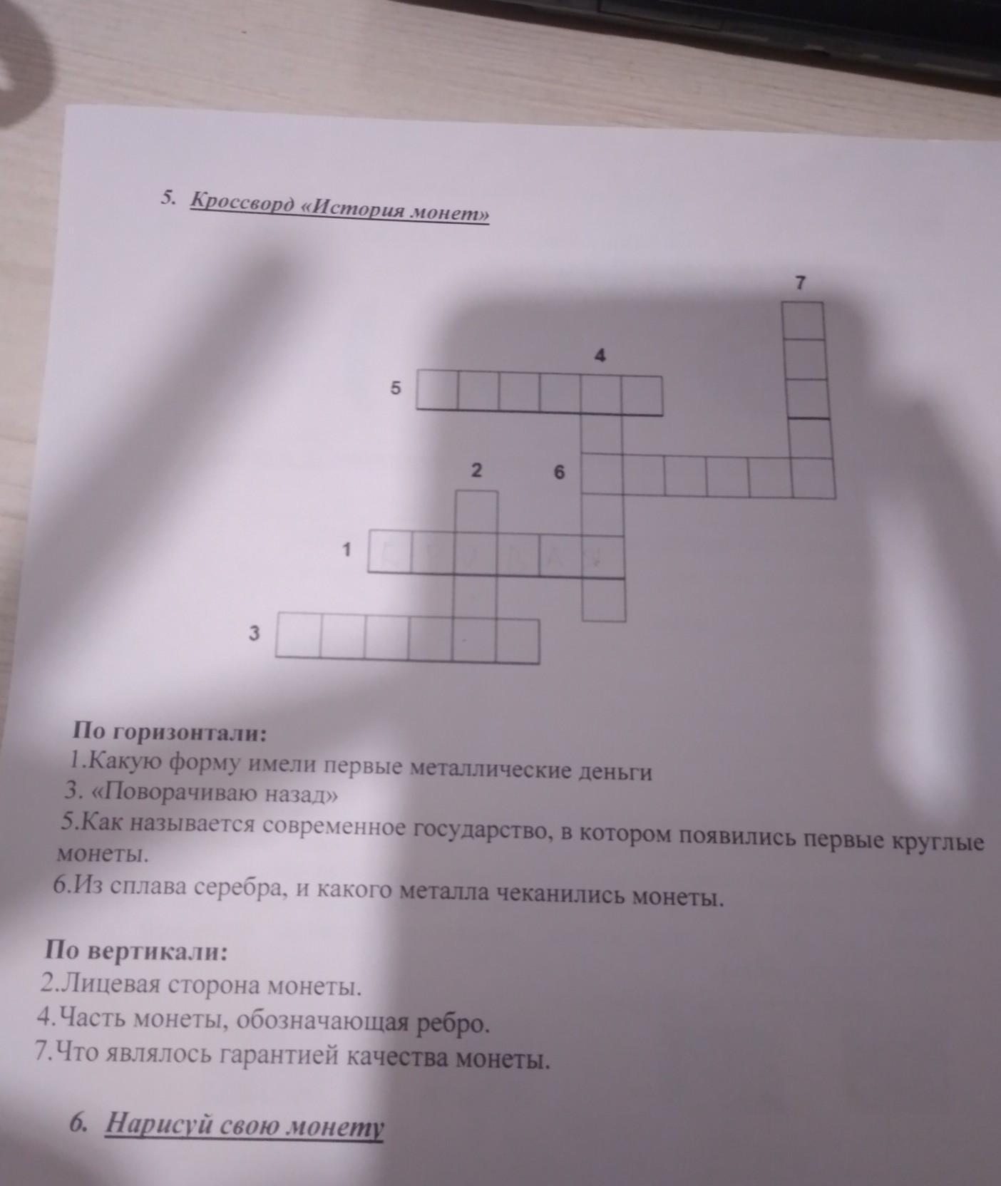 Відповідь: Кроссворд "История монет"