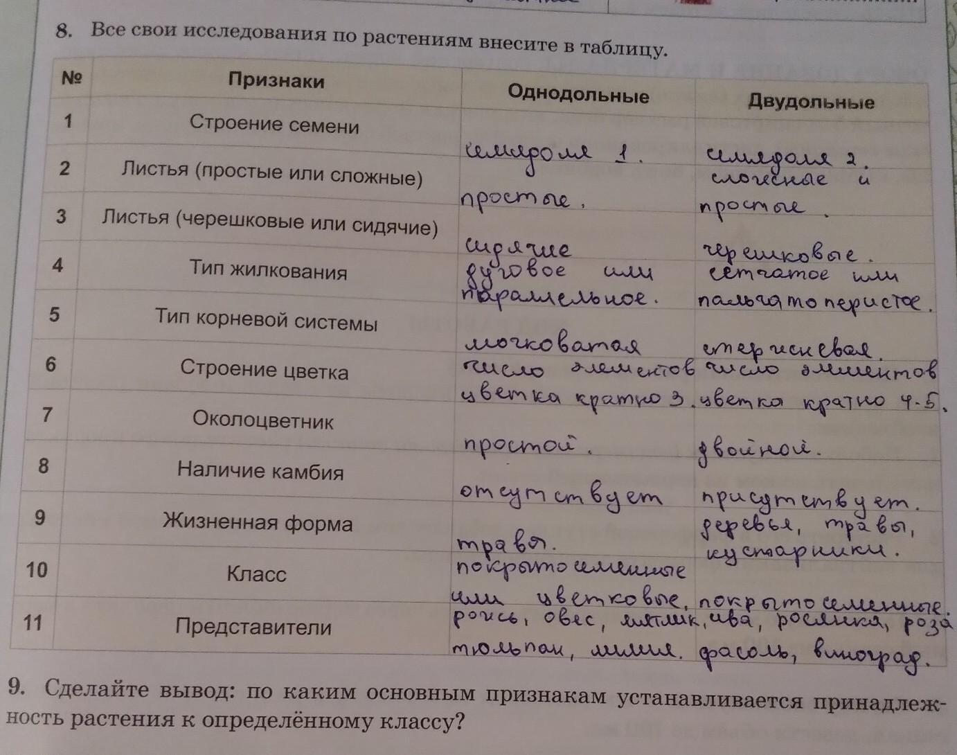 9. Сделайте вывод: по каким основным признакам устанавливается принадлежность растения к определённому классу? помогите пожалуйста...