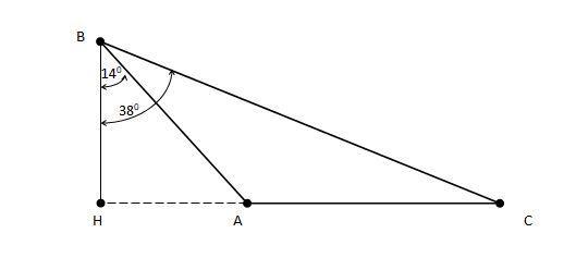 Угол АВС = НВС – НВА = 38 – 14 = 24*.