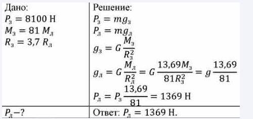 35 БАЛЛОВ! Космический корабль на поверхности Земли имеет вес 8100 H. Каким будет вес этого корабля на поверхности Луны? масса Луны примерно в 81 раз меньше массы Земли, радиус Луны примерно в 3,7 раза меньше радиуса Земли.
