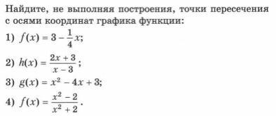 3 - (1/4)*x = 0 дальше просто решаешь это уравнение ; найденный X будет точкой пересечения оси Ox ищешь F(x) нашел(а) и это будет координата пересечения Oy