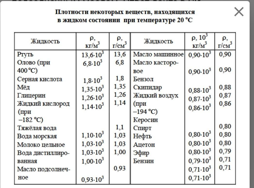 В пол-литровую стеклянную бутылку массой 314 г налили 200 см3 подсолнечного масла. Определите массу бутылки с налитым в нее подсолнечным маслом. Ответ дайте в СИ. Плотности твердых и жидких веществ приведены в таблицах