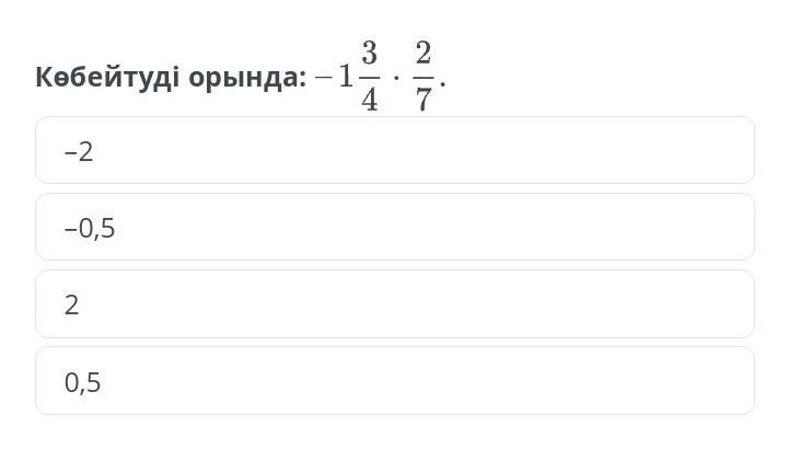 -1 3/4 * 2 / 7 = - 7 / 4 * 2 / 7 = - 7 * 2 / 4 * 7 = - 2/4 = -0,5