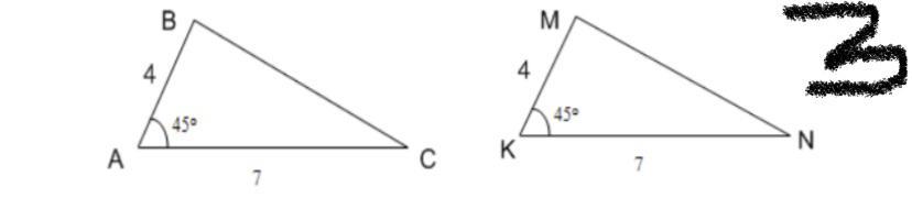 3. А( якщо дивитися на умову задачі на фото, то нам відомо тільки дві сторони і кут між ними у кожному трикутнику)
