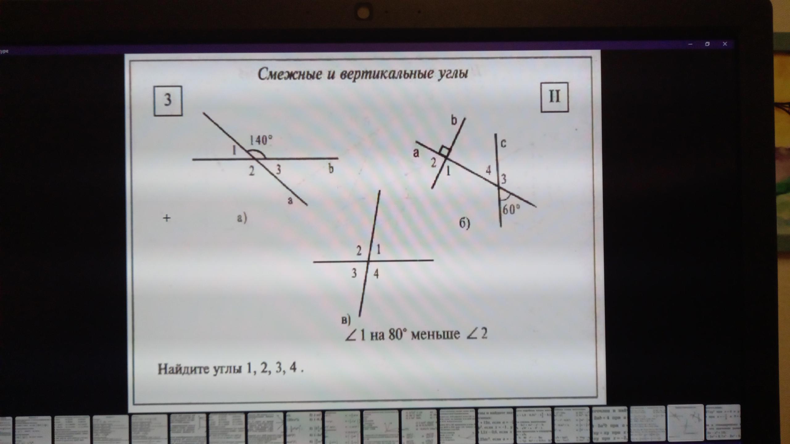 в)пусть угол 1 х°, тогда угол 2= х+80, сумма смежных углов 180°