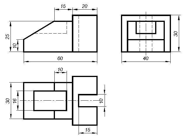 СРОЧНО! ЧЕРЧЕНИЕ! Построить фронтальный вид, вид сверху и вид сбоку и указать размеры. Заранее спасибо!