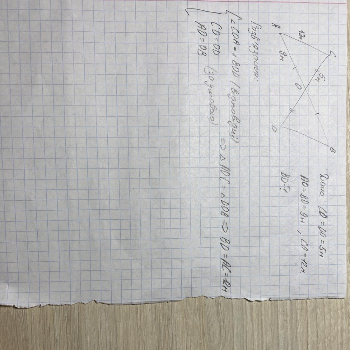 Дано: CO=OD=5 см, AO=BO=9 см, СА=12 см