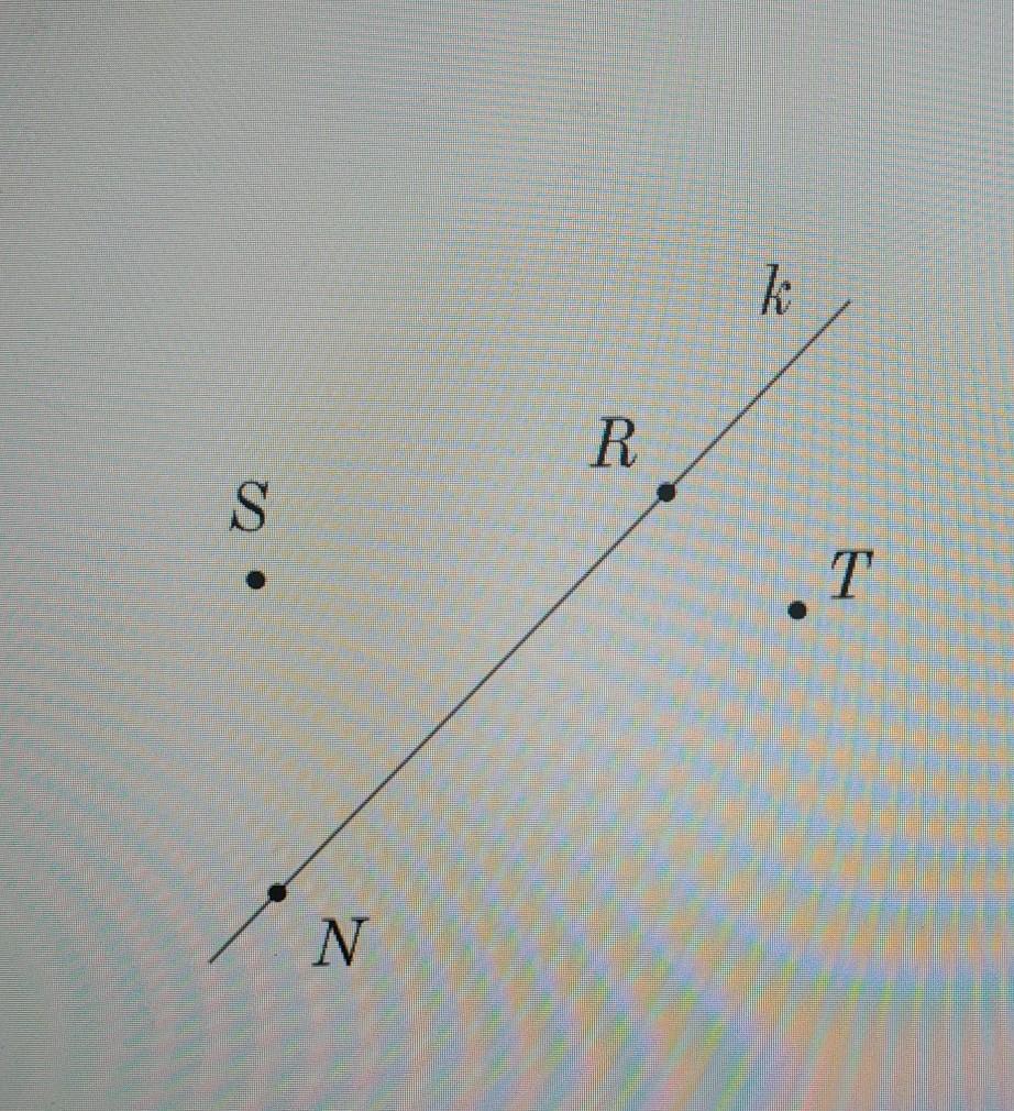 На рисунке изображена прямая k, точки N,R,S и T и отрезок NR