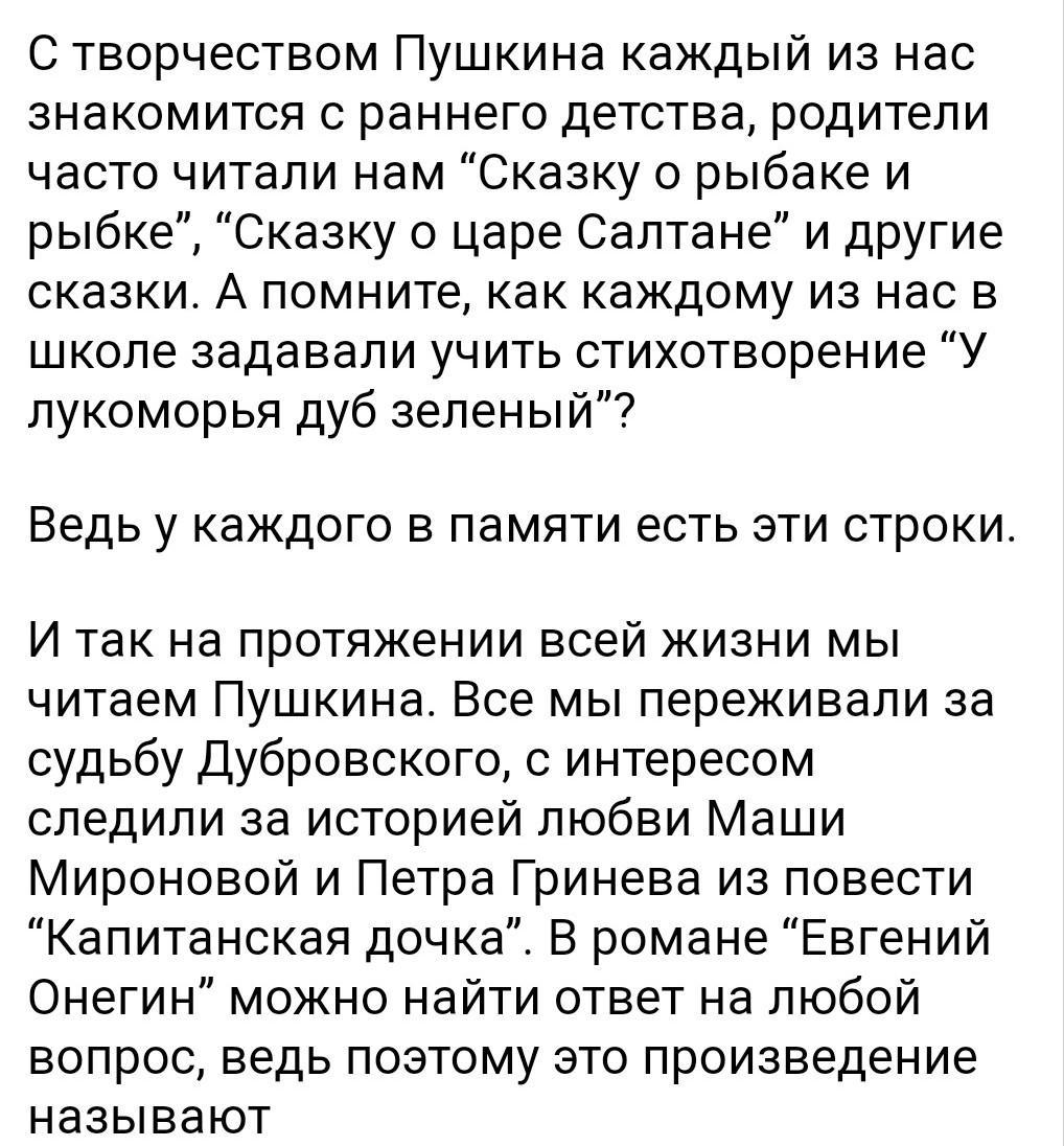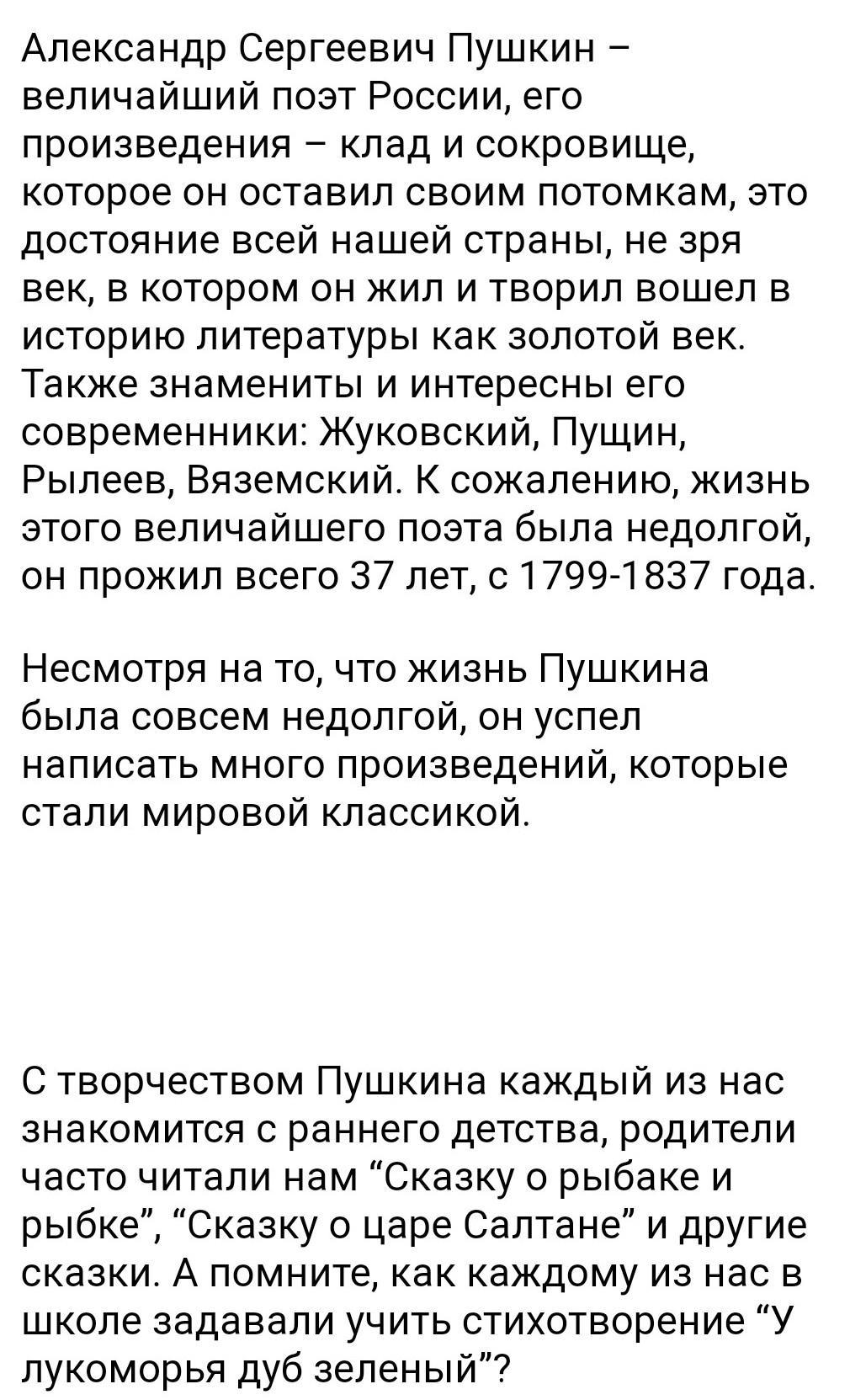 Несмотря на то, что жизнь Пушкина была совсем недолгой, он успел написать много произведений, которые стали мировой классикой.