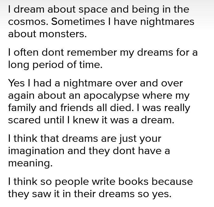 2. What kinds of things do you dream about, e.g. school, your friends?