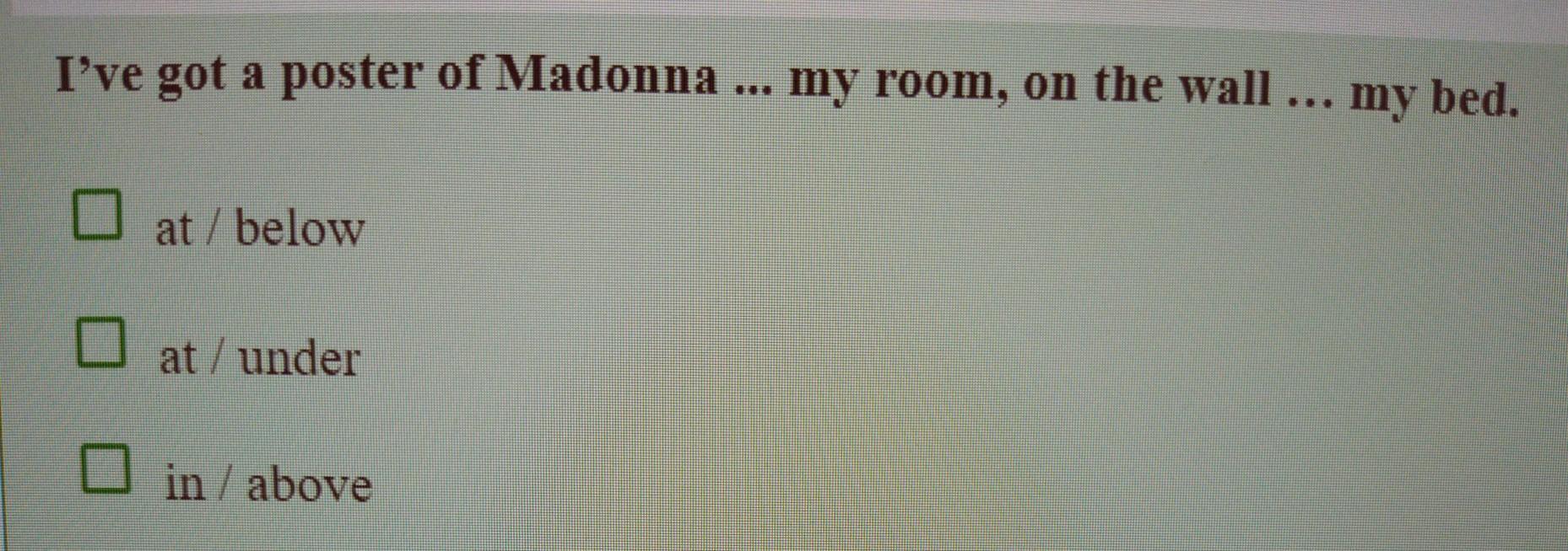 (У меня в комнате на стене над кроватью висит плакат с изображением Мадонны.)
