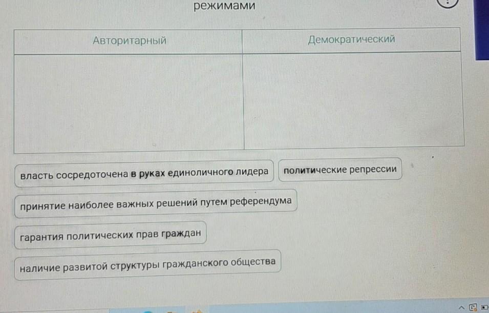 Авторитарный - власть в руках единоличного лидера, репрессии