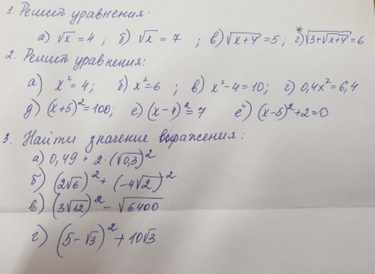 a)x=16 б)x=49 в)x+4=25