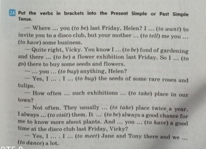 were, wanted, told, had, am, was, went, did you buy, did, bought, do such exhibitions take, take, visit, is, did you have, did, met, danced